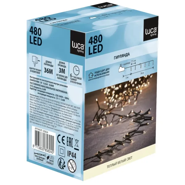 Гирлянда светодиодная нить, 18 м (теплый белый) 480 ламп,Luca