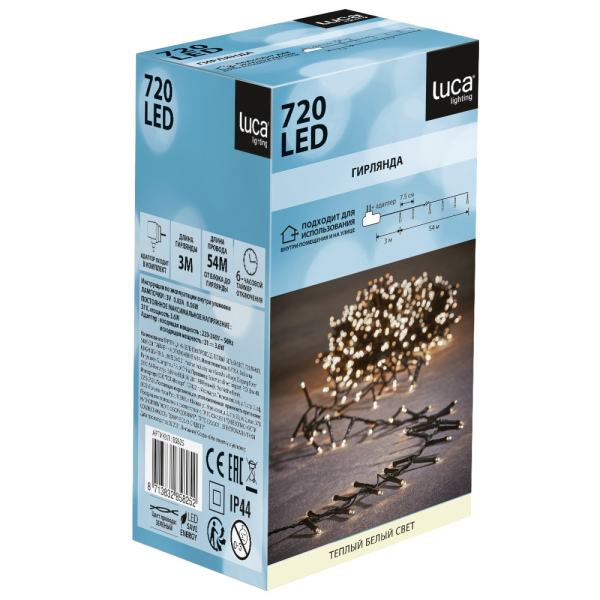 Гирлянда светодиодная нить , 54 м (теплый белый) 720 ламп,Luca