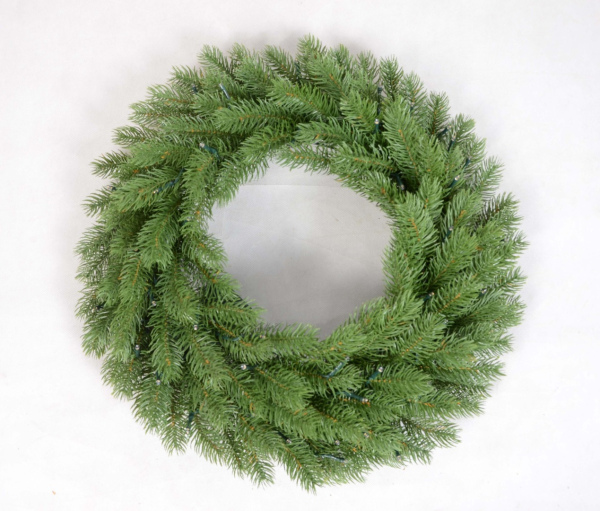 Благодаря литым иголочкам венок выглядит как настоящая ветка ели, принесенная из леса.