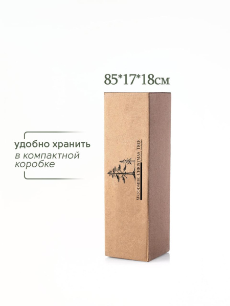 Самое приятное – собирать эту красавицу проще простого. Достаете ее из плотной картонной коробки, аккуратно отгибаете веточки от ствола, и готово! Металлический ствол, украшенный декоративной нитью, надежно держится на стильной подставке, обернутой в уютный холщовый мешочек.
