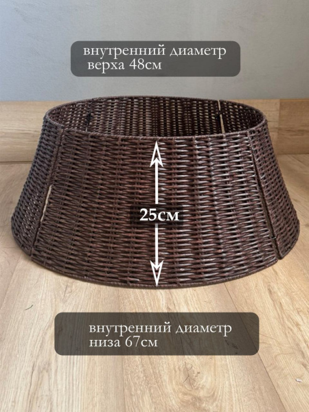 Эта изысканная корзина станет настоящим украшением вашего праздничного интерьера. Темно-коричневый оттенок гармонично сочетается с любым декором и подчеркивает естественную красоту новогодней ели.