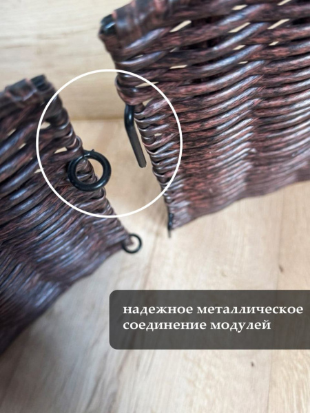 Искусственный ротанг, из которого изготовлена корзина, отличается особой прочностью и долговечностью. Каждое плетение выполнено с особой тщательностью, что гарантирует надежность и долговечность изделия.